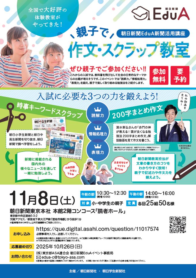【新聞活用講座】親子で作文・スクラップ教室 お申込みご案内(お申込み期限2025年10月26日まで)
